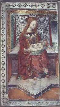 Montegrino, oratorio di San Martino: San Bernardino]. Nella chiesa di San Biagio a Voldomino si trova un affresco della Madonna di Loreto, datato 1503, raffigurante la Vergine seduta su un baldacchino trasportato da angeli. Del 29 agosto 1517 è la rappresentazione della Madonna col Bambino nella chiesa dedicata alla Madonna della Neve a Ligurno, parte di un affresco di dimensioni maggiori [vedasi a fig. 1:
