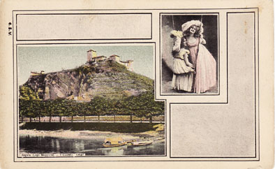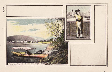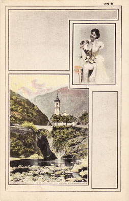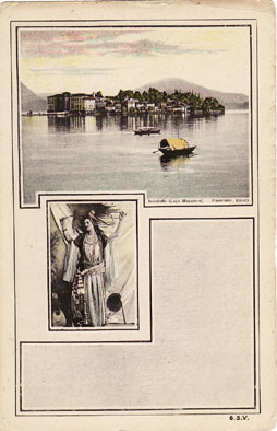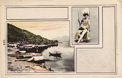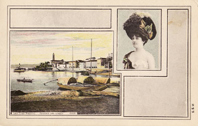 Curiosa serie di cartoline di un non meglio identificato editore che mischia paesaggi del lago con immagini di ”donnine”