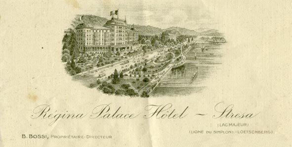 Stresa, Regina Palace, carta intestata 1921 Stresa, Regina Palace, carta intestata 1921