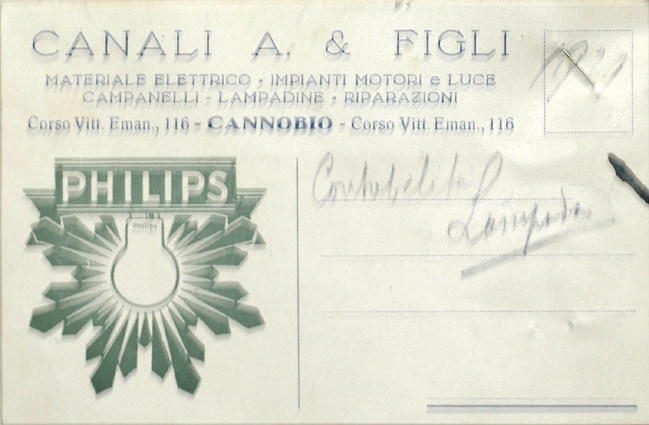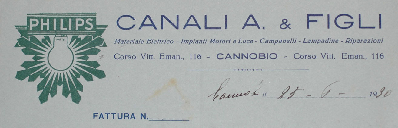 VB, Cannobio, Canali A. e Figli, mat. elettr. 1929