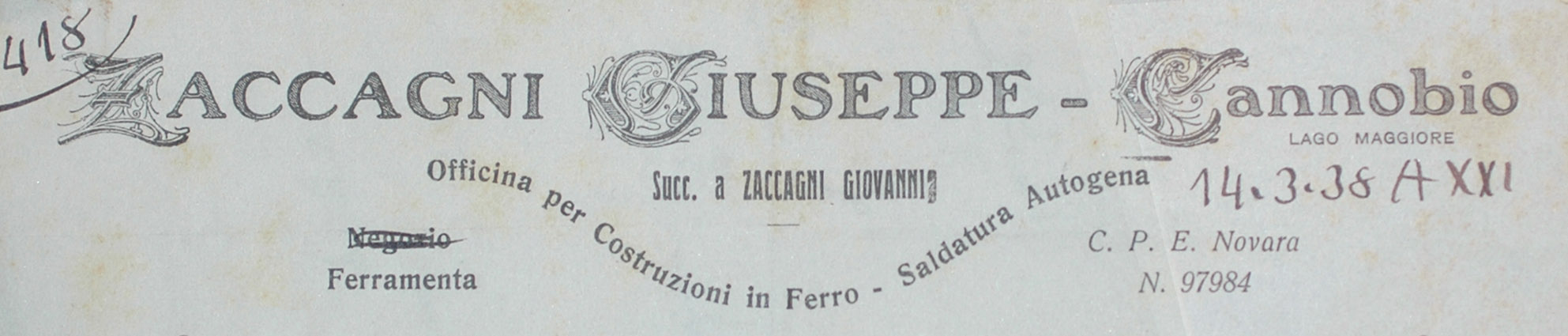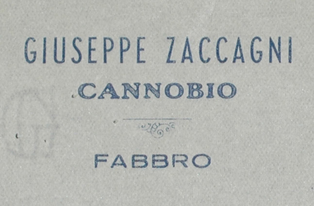 Eserc., Zaccagni Giuseppe Fabbro, Cannobio 1938