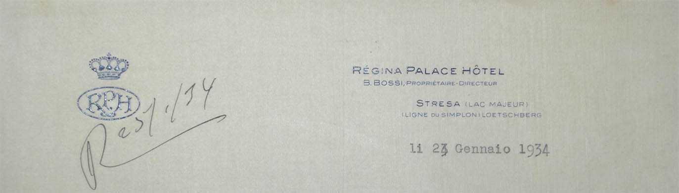 Eserc., Stresa, Regina Palace, carta int. 1934 Eserc., Stresa, Regina Palace, carta int. 1934