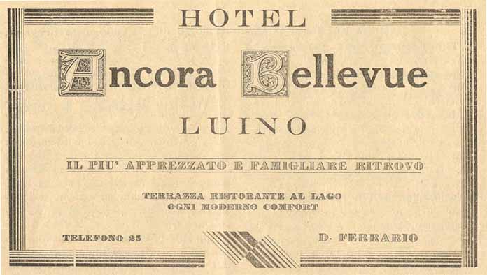 Luino, pubblicità Hotel Ancora 1934La scheda che stai visualizzando è visibile GRATUITAMENTE.