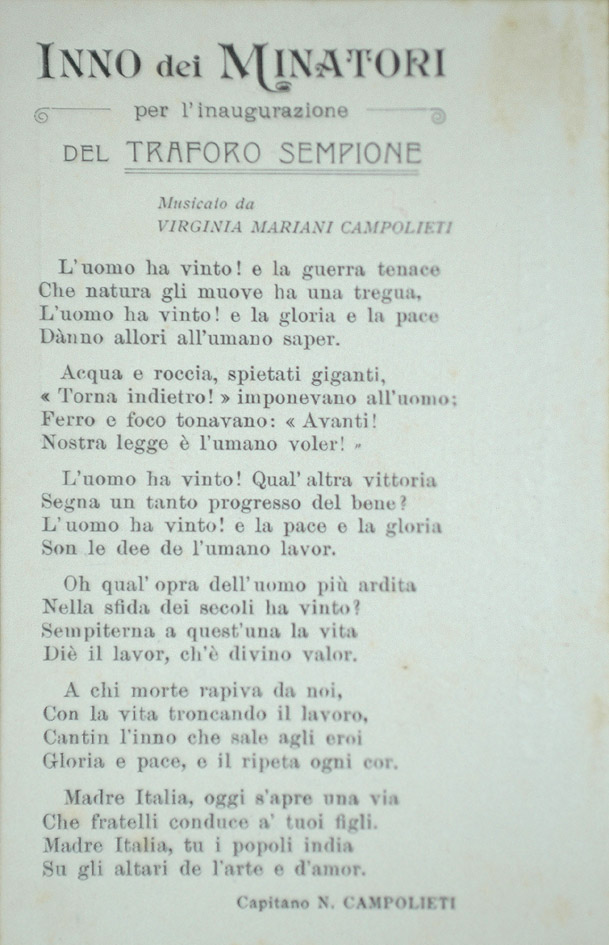 Inno dei Minatori per l`Inaugurazione del Traforo del Sempione