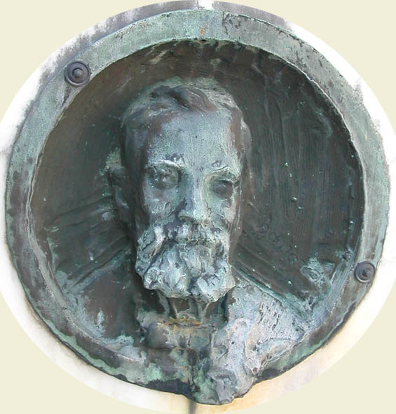 Una lapide e un tondo bronzeo opera di Ernesto Bazzaro ricorda l`ingegner Francesco Molinari nel cimitero di Gignese.