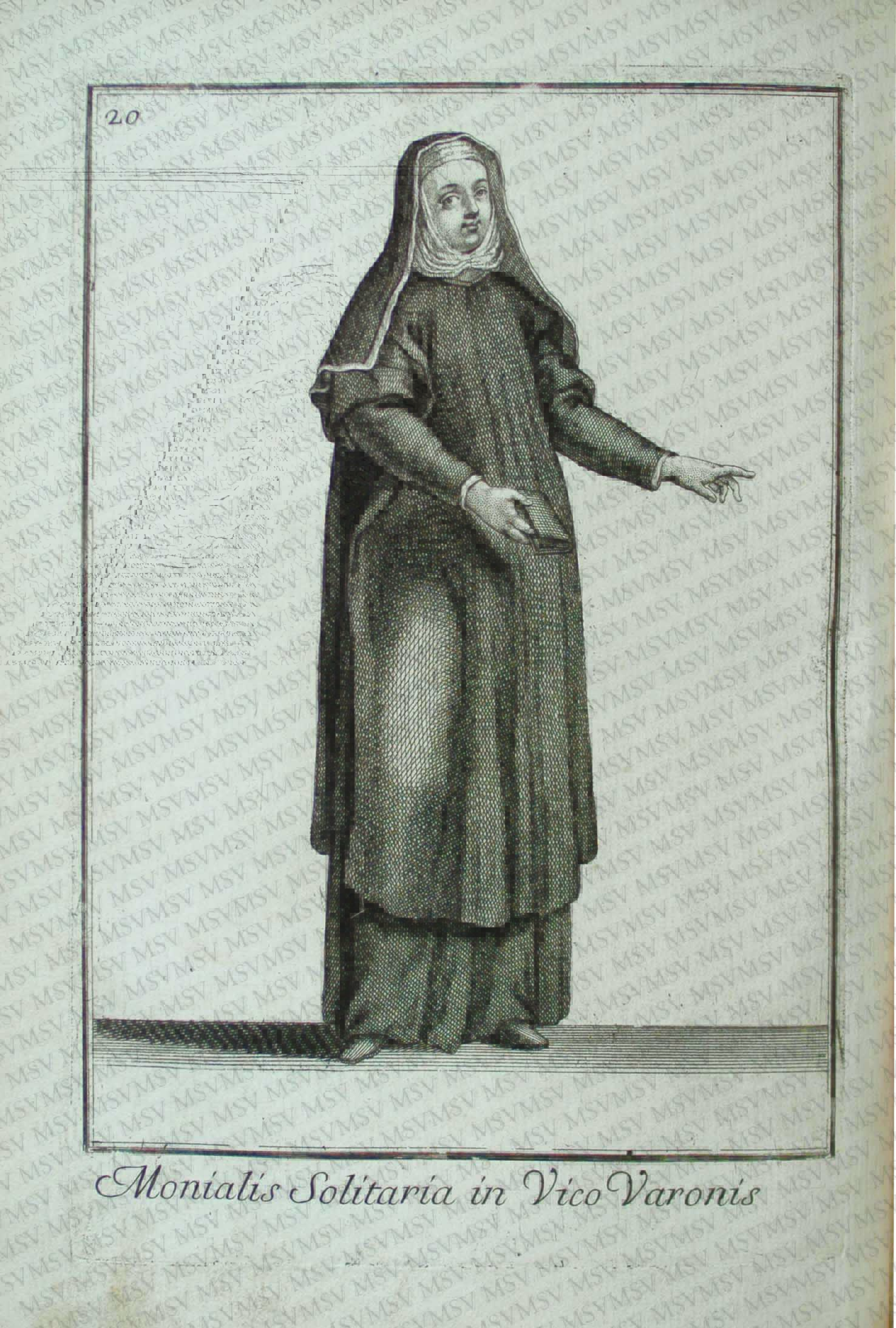 - Incisione dedotta da: FILIPPO BONANNI (o BUONANNI), La gerarchia ecclesiastica considerata nelle vesti sagre, e civili usate da quelli, li quali la compongono, espresse, e spiegate con le imagini di ciascun grado della medesima; offerta alla maesta di Giovanni Quinto re di Portogallo e dell’Algarve etc. dal p. Filippo Bonanni della Compagnia di Gesù. In Roma, nella stamperia di Giorgio Placho intagliatore e gettatore di caratteri presso S. Marco, 1720