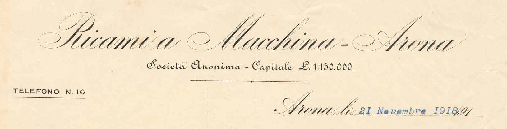 Arona, Società Ricami a macchina, intest. 1918