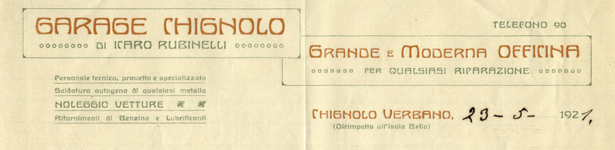 Chignolo, Garage Icaro Rubinelli, intest. 1921 Chignolo, Garage Icaro Rubinelli, intest. 1921
