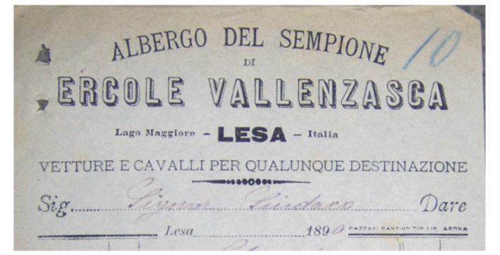 Albergo del Sempione di Ercole Vallenzasca. Lago Maggiore - Lesa - Italia. Vetture e cavalli per qualunque destinazione