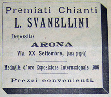 Premiati Chianti L. Svanellini – Deposito Arona Via XX settembre (casa propria) – Medaglia d’oro Esposizione Internazionale 1906 – Prezzi convenienti