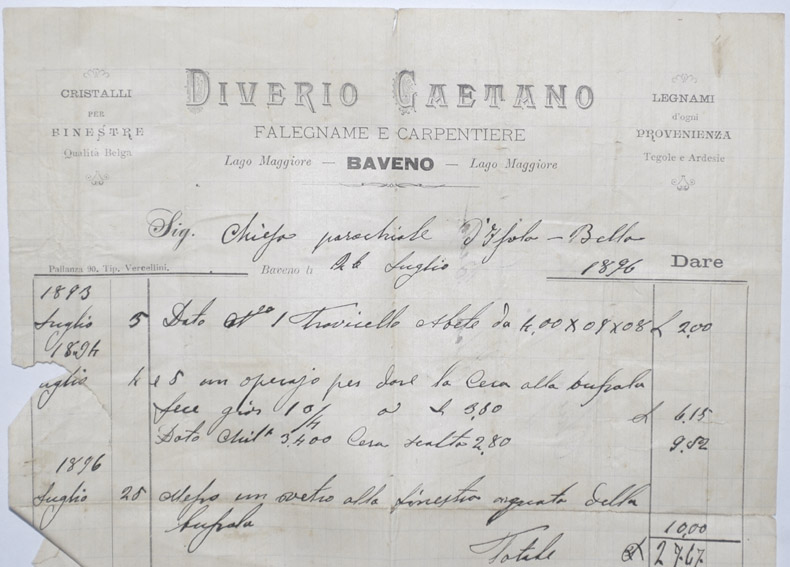 Isola Bella, Archivio Parrocchiale, Amministrazione, Conti di fabbriceria, Conti anno 1896.