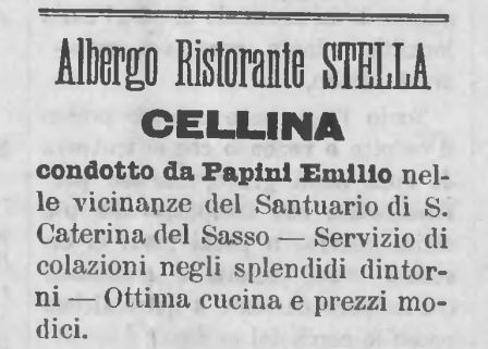 Eserc., Albergo Ristorante Stella, Cellina 1904 Eserc., Albergo Ristorante Stella, Cellina 1904