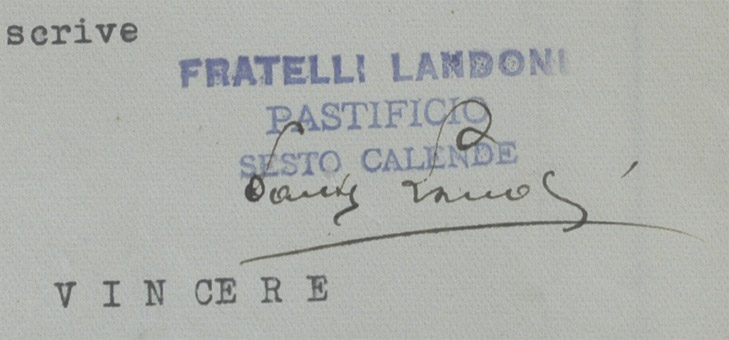 Eserc., Landoni Pastificio, timb. Sesto Cal. 1942La scheda che stai visualizzando è visibile GRATUITAMENTE.