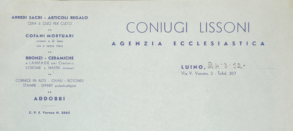 Eserc., Lissoni oggettistica sacra, Luino 1953 Eserc., Lissoni oggettistica sacra, Luino 1953