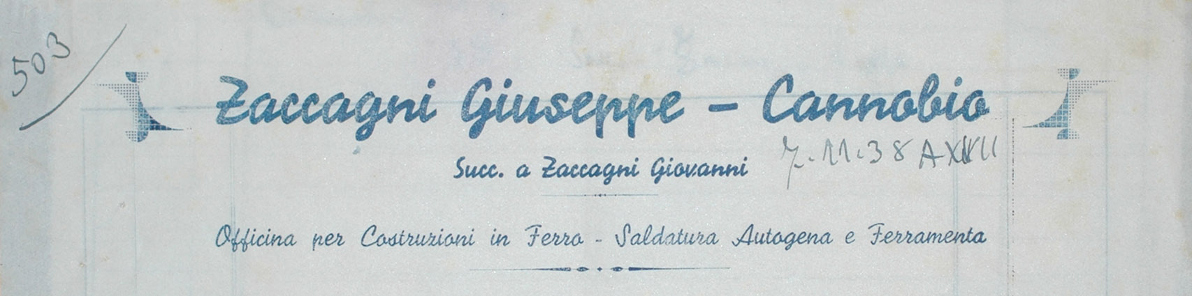 Eserc., Zaccagni Giuseppe Fabbro, Cannobio 1938
