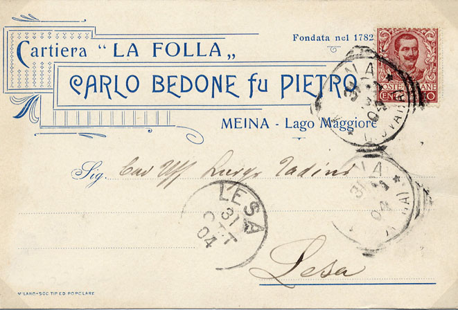 Cartolina commerciale 1904La scheda che stai visualizzando è visibile GRATUITAMENTE.