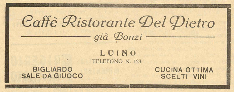Pubblicità desunta dal foglio ”Avvenire del Verbano”, numero 5 del 1931.