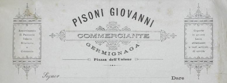 Pisoni Giovanni Commerciante. Assortimento Pannerie, Telerie