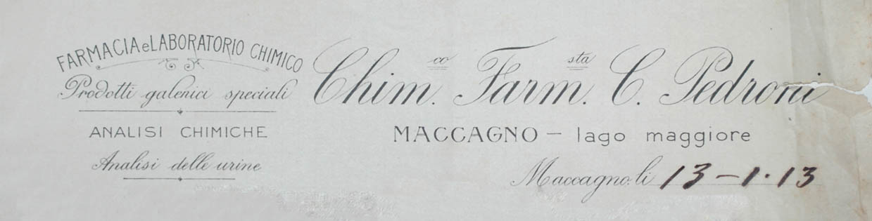 Eserc., Maccagno, Farmacia Pedroni, intest. 1913 Eserc., Maccagno, Farmacia Pedroni, intest. 1913