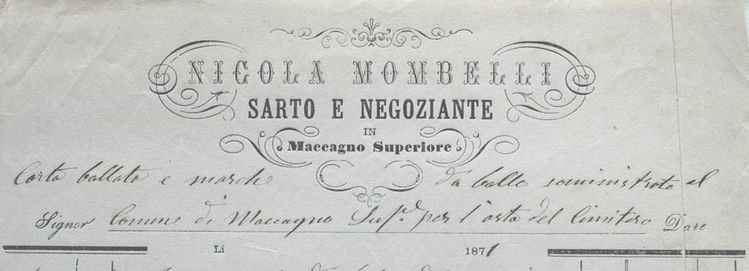 Eserc., Maccagno Sup., N. Mombelli sarto, fl. 1871 Eserc., Maccagno Sup., N. Mombelli sarto, fl. 1871