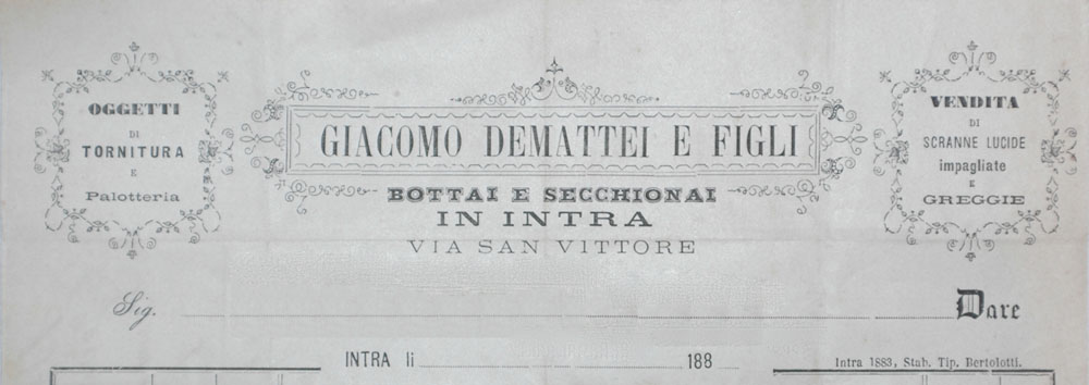 Eserc., Intra, Demattei e figli bottai, fl. 1886 Eserc., Intra, Demattei e figli bottai, fl. 1886