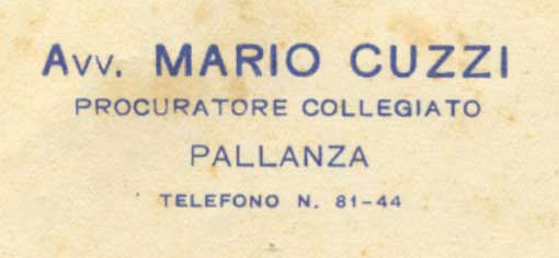 Avv. Mario Cuzzi procuratore colleg. Pallanza 1937 Avv. Mario Cuzzi procuratore colleg. Pallanza 1937