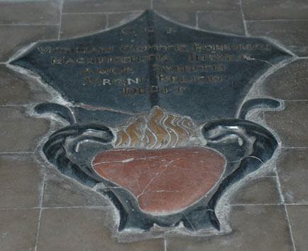 Lapide in rilievo con iscrizione, sotto cui sta il cuore di Vitaliano VI Borromeo