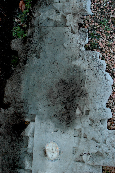 Pessimo. Il cippo giace rovescio a costituire cordolo di bordura dell’aiuola di altra tomba. Fotografia ceramica persa. Ornamenti floreali scolpiti, e assai degradati per chiazze d’umido e contatto con la terra