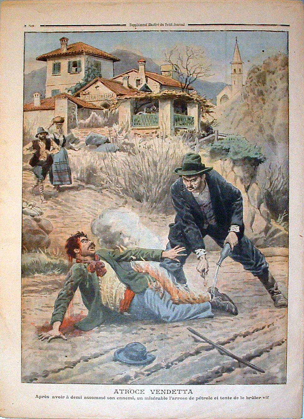 Sabato, 23 gennaio 1909. Per vendetta, dopo averlo bastonato, cosparge il rivale di petrolio e gli dà fuoco: le due persone coinvolte sono Ignazio Micotti e Edoardo Francini, ambedue di Oggebbio.