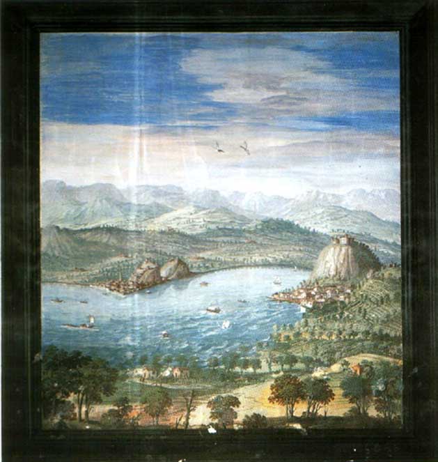 Affresco (metà sec. XVII) di Arona e Angera, ospitato nel palazzo Arese Borromeo di Cesano Maderno